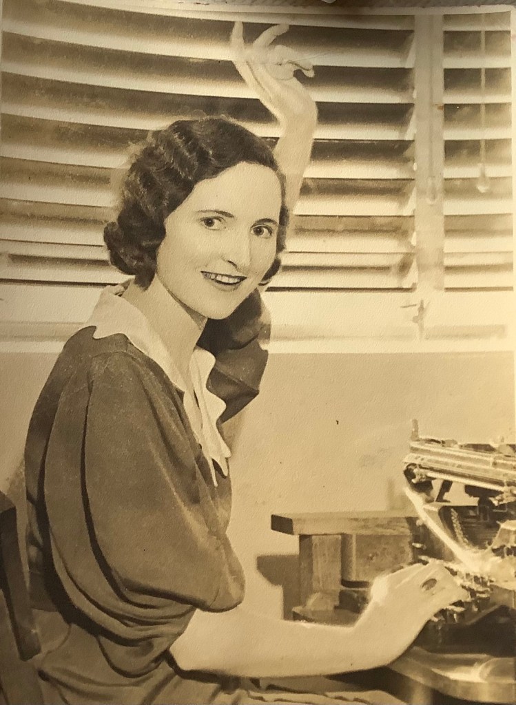 Miss Lucy Breen was the first, female editor at Sydney’s now-defunct The Sun newspaper. She ran the Features department. She has her hand raised as this was to signal the copy boy that there was a story all ready to go to print.